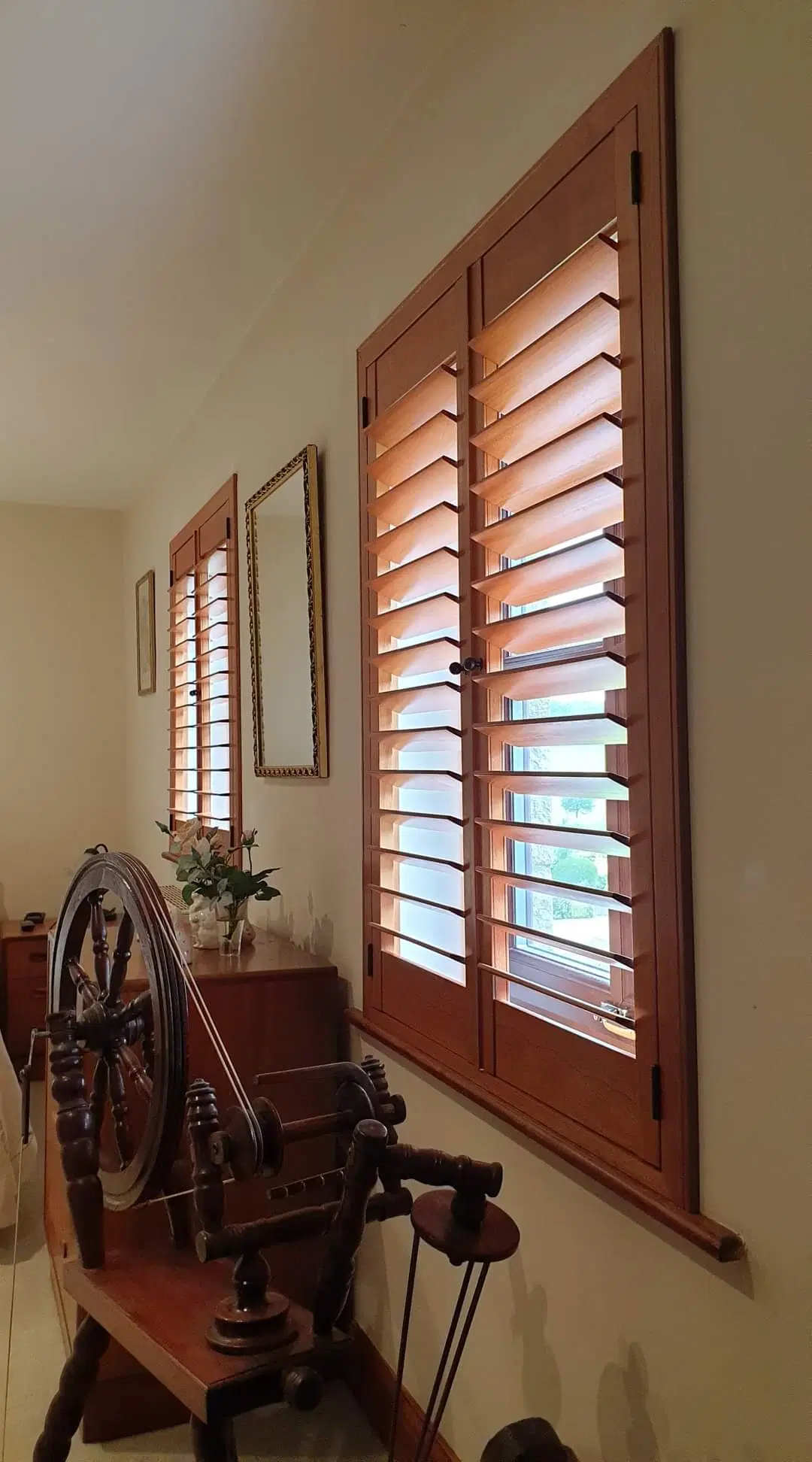 Unlike cheaper alternatives, proper plantation shutters are built to last decades. The solid construction, quality hinges, and substantial louvres handle daily use without warping, sagging, or breaking. They’re fitted precisely to your window openings with custom-made frames, so everything sits flush and operates smoothly. You get more control over light and privacy than almost any other window covering – tilt the louvres slightly for gentle filtered light, open them fully for maximum brightness, close them completely for privacy and darkness, or swing the whole panel open to let fresh air in.