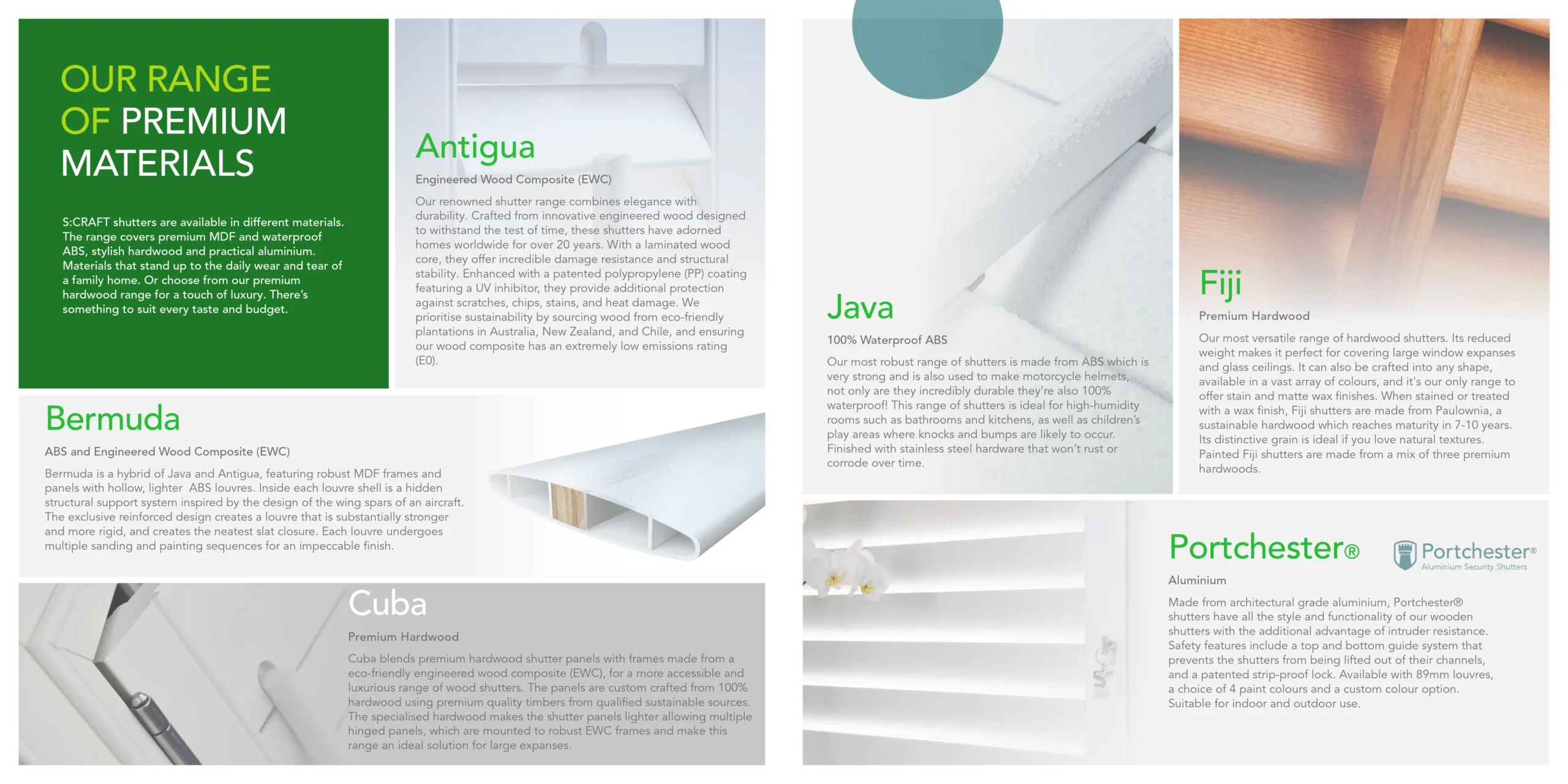 Not Ideal for Very Damp Rooms? – While fine for standard bathrooms/kitchens, constant moisture/condensation can damage wood shutters. For very damp rooms, our similar uPVC Urban shutters and PFSL are great. However Plantation Shutters can be offered in Java – 100% waterproof ABS.